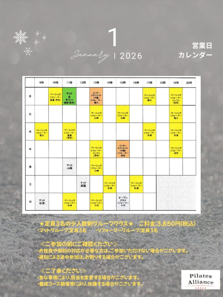 4日(日) 9:00 マット、11:00 リフォーマー (杉浦)